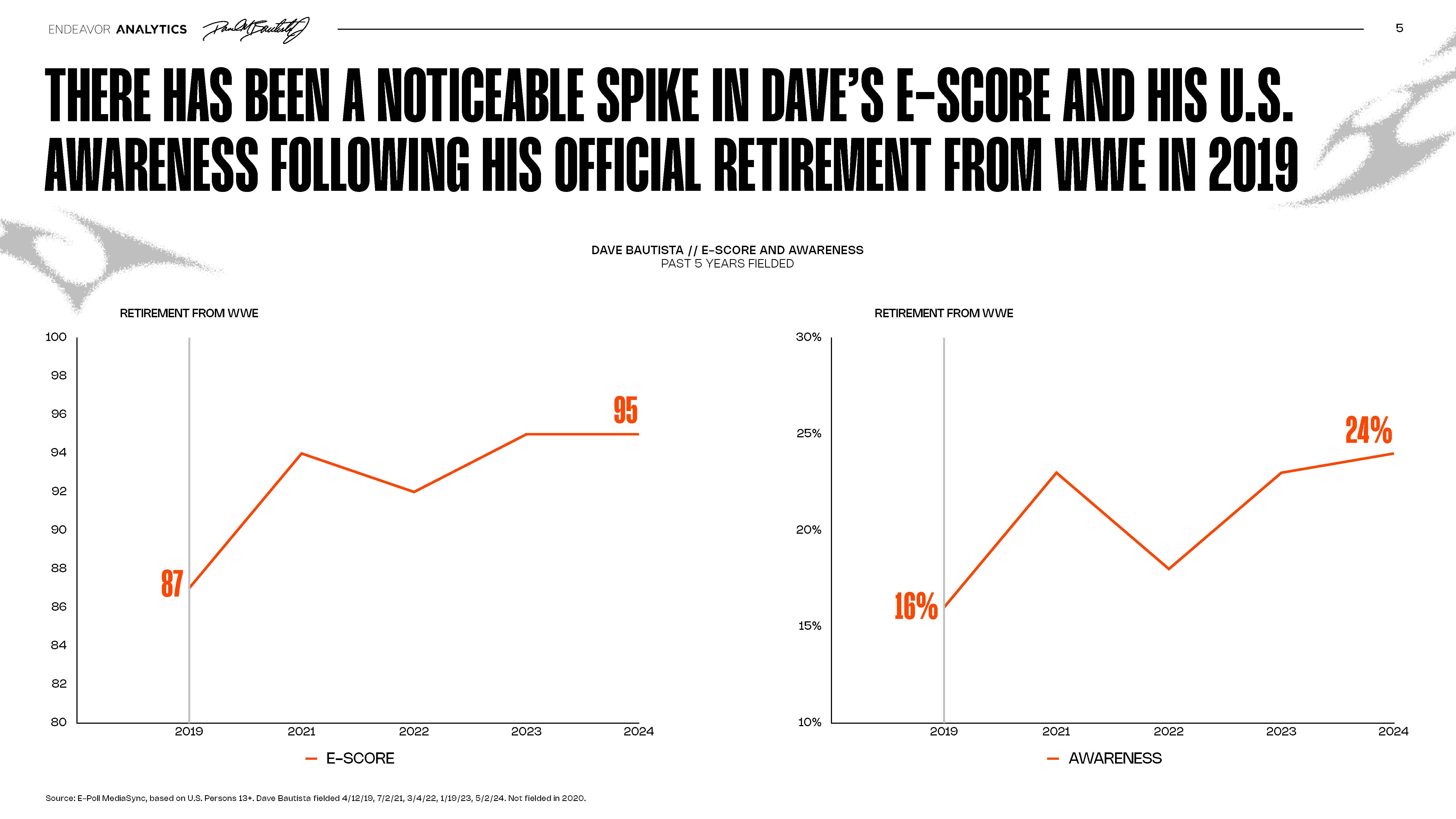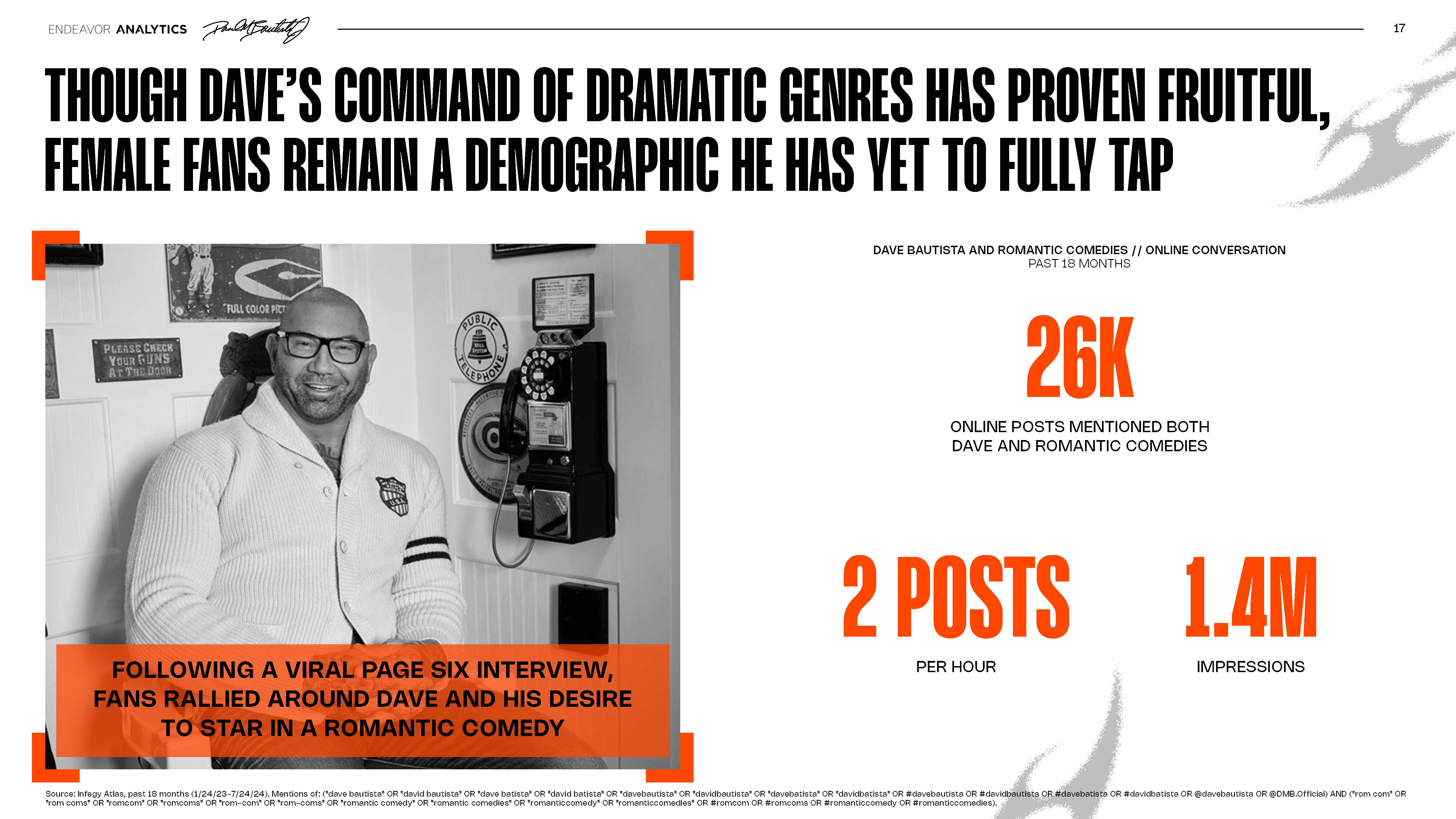 Talent deck featuring data on actor, Dave Bautista, for WME.